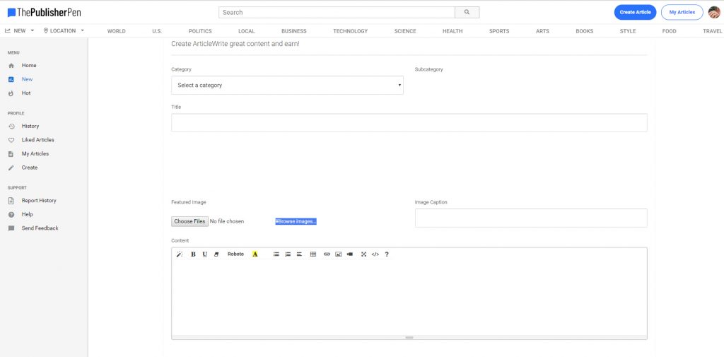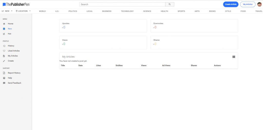 The Publisher Pen is a website where any user can register and publish their news, views about different topics under any of the following fields – World news, US news, Politics, Local news, Business, Technology, Science, Sports, Food, Travel, etc.